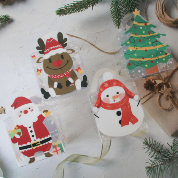 - Hộp mica trong suốt với màu sắc tươi sáng phù hợp lễ Noel, mực in đều màu, họa tiết sắc nét, kích thước hộp 9 x 9 x 9cm phù hợp đựng các loại bánh quy hoặc kẹo gậy giáng sinh.