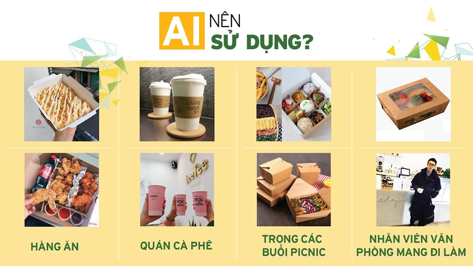 - Rất nhiều nhãn hàng thực phẩm, thức ăn nhanh đã lựa chọn các loại cốc, hộp hay ống hút giấy như một cách PR thương hiệu tiết kiệm mà hiệu quả.