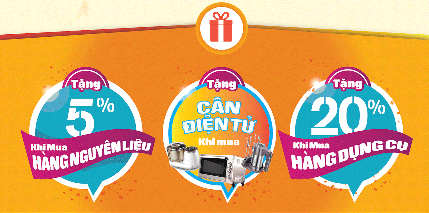 Chương trình đặc biệt áp dụng cho tất cả các mặt hàng và diễn ra trong toàn bộ ngày 23/11/2016 tại cơ sở Lò Đúc. Khách hàng mua hàng với bất kỳ hoá đơn gì sẽ được chiết khấu 20% với dòng hàng dụng cụ, khuôn khay đồ làm bánh và 5% với dòng sản phẩm nguyên liệu làm bánh. Đặc biệt với nhãn hàng Puratos bạn sẽ được giảm giá trực tiếp 10% sản phẩm