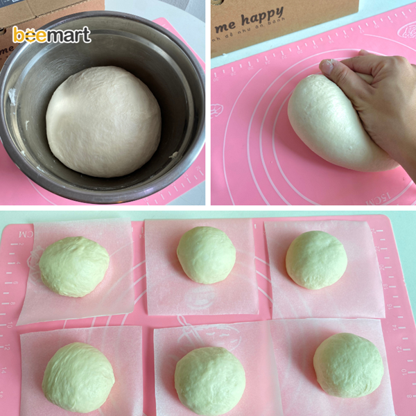 - Sau khi ủ lần 1, bột bánh nở gấp đôi, ta dùng nay nhấn để tránh các bọt khí