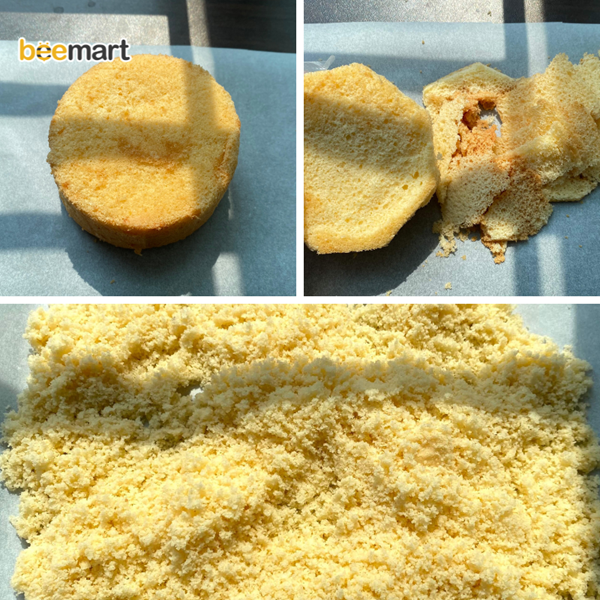- Cốt bông lan chúng ta tiến hành cắt viền bánh, sau đó cắt nhỏ thành các miếng
