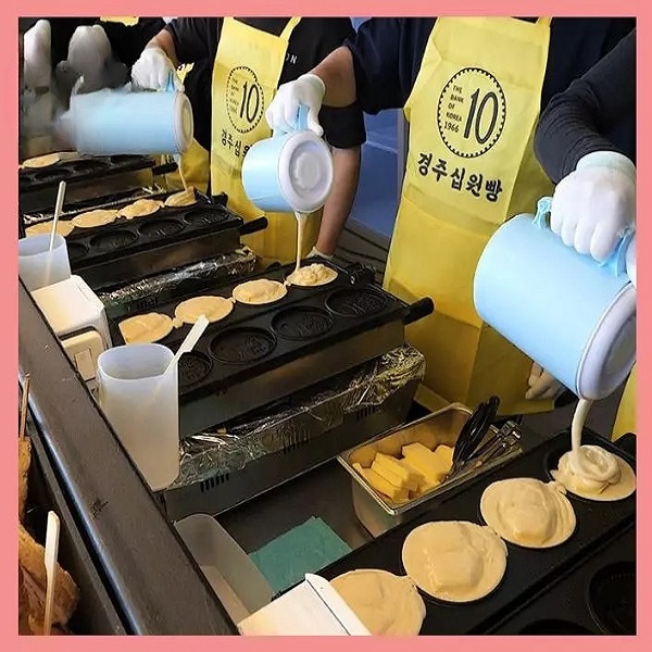 Bánh là một chiếc bánh kếp có hình đồng xu 10 won và thường được nhồi nhân kem phô mai (nó cũng được phổ biến bởi một quầy hàng ở phố ẩm thực Dotonbori nổi tiếng của Osaka, nơi bán phiên bản đồng xu 10 yên).