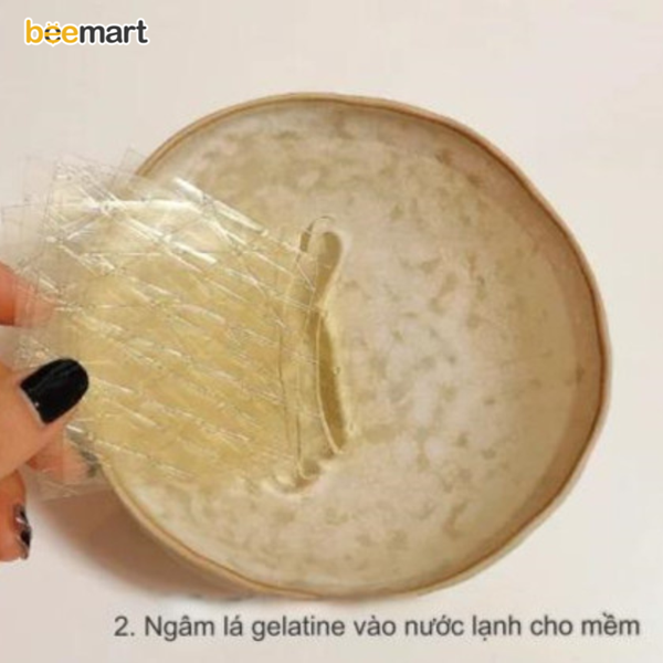+ Ngâm lá gelatine vào nước lạnh cho mềm