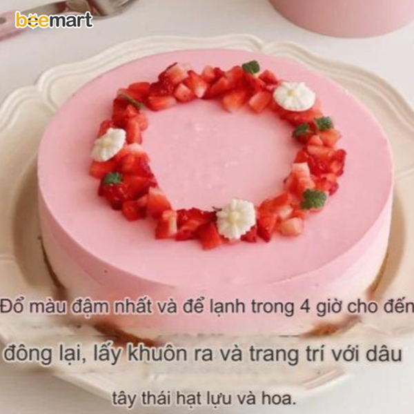 + Tiến hành gỡ khuôn và trang trí thêm dâu tây, mứt hoặc hoa trang trí và thưởng thức