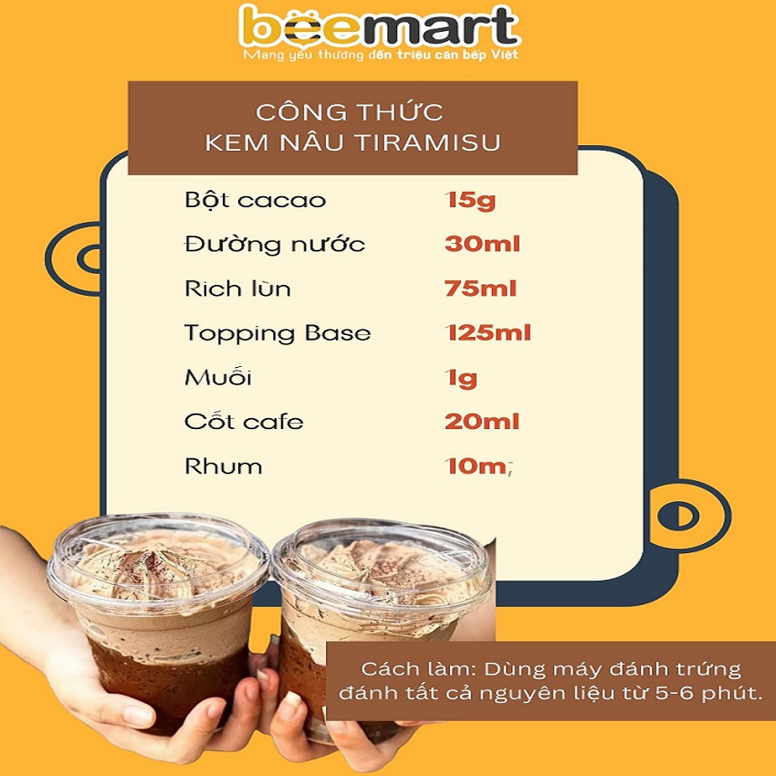 Tiramisu - niềm tự hào của nền ẩm thực phong phú nước Ý từ lâu đã chinh phục được ngay cả những thực khách khó tính nhất với sự quyến rũ, nồng nàn khi kết hợp hài hòa vị đắng và ngọt của kem béo và cafe. Vậy thì, bạn nghĩ sao về việc, chúng ta có thể thưởng thức hương vị tiramisu đặc trưng này cùng với ly trà sữa hay cafe thơm ngon của mình? Sự kết hợp này chắc chắn sẽ mang lại trải nghiệm ẩm thực đặc biệt cho bạn. Với topping kem nâu tiramisu, món thức uống độc đáo, đẹp mắt và ngon miệng này sẽ chinh phục bạn ngay từ lần thử đầu tiên. Tìm hiểu cách làm món topping đặc biệt này cùng Bee ngay thôi nào!