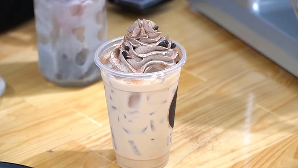 Ly trà sữa với phần topping kem nâu tiramisu
