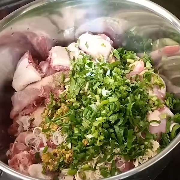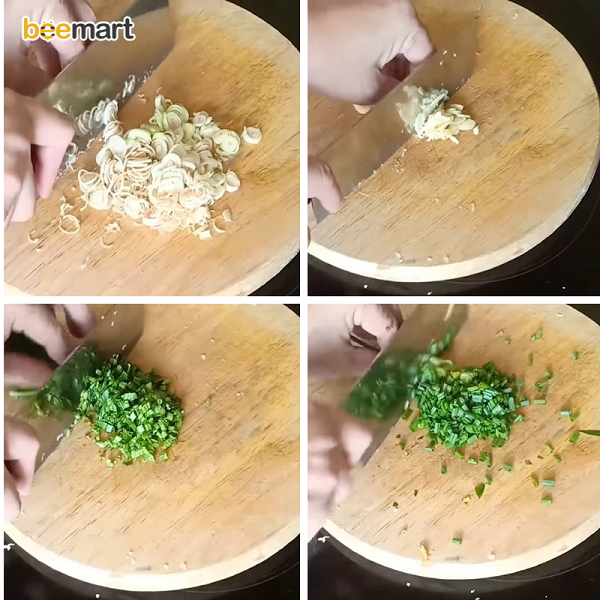 + Tỏi bóc vỏ vỏ và băm nhỏ. Hành lá và ngò gai cắt bỏ gốc, rửa sạch rồi cắt nhỏ.