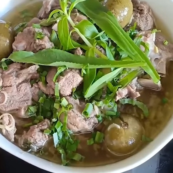 + Vịt om sấu hoàn thành có một mùi rất thơm. Nước dùng trong, vị ngọt thanh, gia vị được nêm nếm khá vừa ăn.
