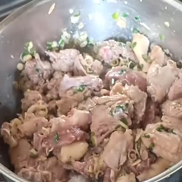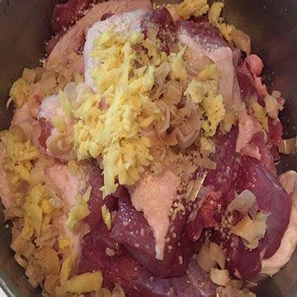 + Ướp thịt vịt với 1 muỗng cà phê muối, gừng, sả cắt lát, 1/2 muỗng cà phê đường, 1 muỗng canh dầu ăn trong khoảng 30 phút.