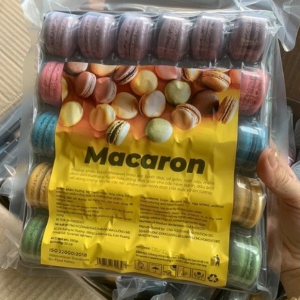 Thành phần: Đường, bột hạnh nhân, lòng trắng trứng, màu thực phẩm, hương thực phẩm