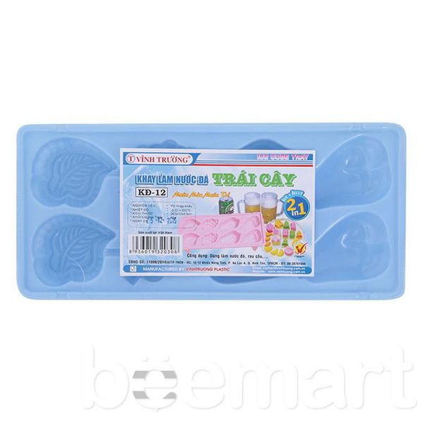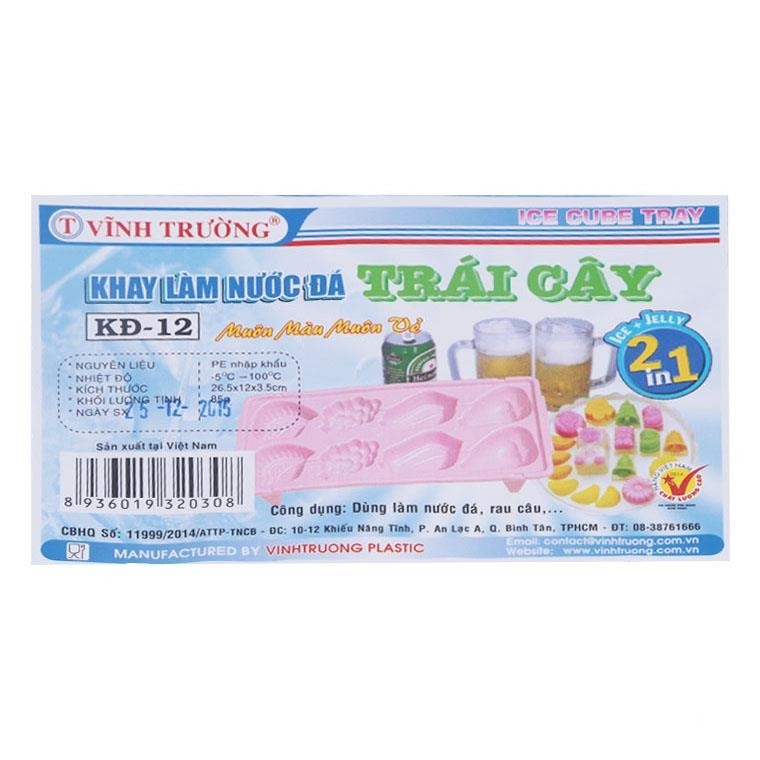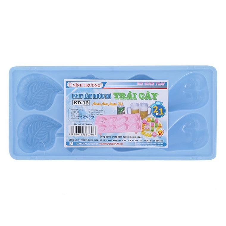 Freeship đơn đầu tiên khi nhập mã "FREEMOI"Khay đá 8 viên hình trái cây Vĩnh Trường là sản phẩm khay đá nguồn gốc Việt Nam, xuất xứ chính hãng, có thể ứng dụng đa dạng để làm đá viên, làm thạch hoặc đổ socola.