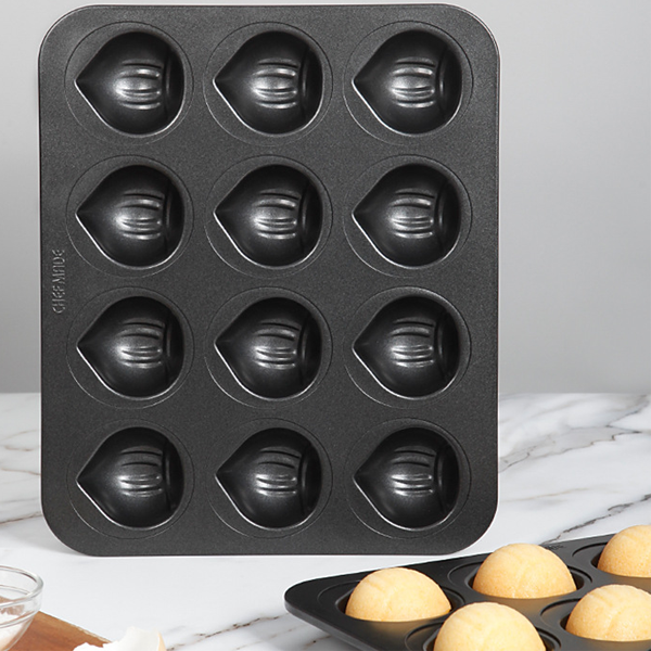 Khuôn bánh hình 12 quả thông được làm từ chất liệu carbon nặng có độ bền tốt, khả năng truyền nhiệt hiệu quả, chịu được nhiệt độ cao giúp thành phẩm bánh khi ra lò có độ chín hoàn hảo. Phần viền khuôn được cán dày tranhsh được hiện tượng bị cong vênh sau thời gian sử dụng dài. Khi chạm vào bạn sẽ cảm thấy đặc biệt thoải mái dễ dàng cầm, nắm, di chuyển kể cả khi dùng găng tay.