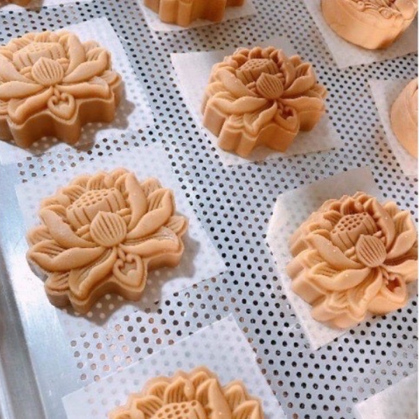 - Họa tiết hoa sen được khắc sâu giúp tạo hình bánh sắc nét hơn