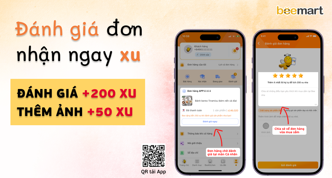 - Khi bạn mới phát sinh đơn hàng đầu tiên trên App Beemart, đơn hàng trên 100K bạn nhận ngay 5.000 xu, đơn hàng trên 250K bạn nhận ngay 10.000 xu. Bạn mới cũng sẽ nhận được xu tương ứng.