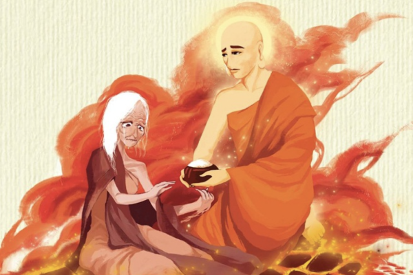 Không khỏi đau xót khi thấy hình ảnh người mẹ của mình lang thang nơi địa ngục tù đày, ngài liền cầu cứu Phật Tổ nhưng Phật liền dạy rằng dù thần thông quảng đại tới đâu thì ông cũng chẳng đủ sức để cứu mẹ đâu.