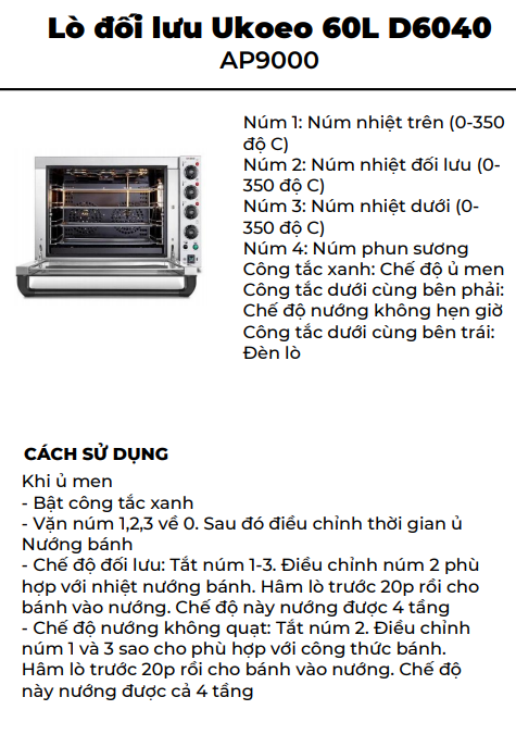 Freeship đơn đầu tiên khi nhập mã "FREEMOI"Lò đối lưu Ukoeo D6040 đây là dòng lò gia đình cao cấp nhất của Ukoeo mới được ra mắt cách đây không lâu với những chức năng phải gọi là đỉnh của đỉnh