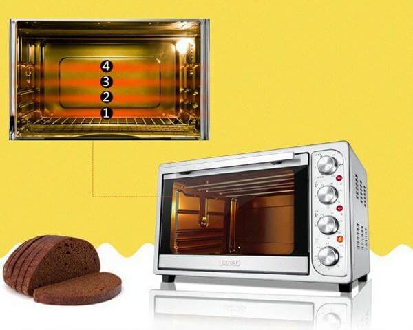 – Có đèn và 8 thanh nhiệt xếp song song nhau, chỉnh nhiệt trên dưới từ 60 - 250 độ C, nhiệt độ thích hợp cho nhiều loại bánh và món ăn. Có thể sấy, lên men ủ bánh, nướng bánh trực tiếp. Nhiệt không hề chênh so với các lò nướng thông thường khác ngoài thị trường.