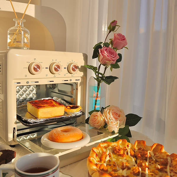 Lò nướng kiêm nồi chiên không dầu ringo có thiết kế hiện đại, vỏ màu trắng trang nhã giúp tô điểm thêm cho không gian bếp nhà bạn.