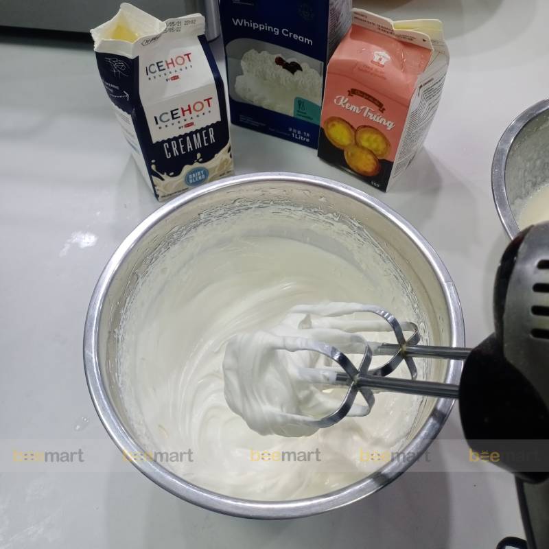 * Kem béo thực vật có độ béo cao, dễ đánh mịn, giá thành lại rất phải chăng nên bạn hoàn toàn có thể dùng nguyên liệu này trong phần kem trứng để thêm béo ngậy nhé. Một số hãng kem béo thực vật bạn có thể tham khảo như: Kem béo thực vật ICEHOT, kem béo thực vật Rich lùn, kem béo thực vật Nhất Hương,....