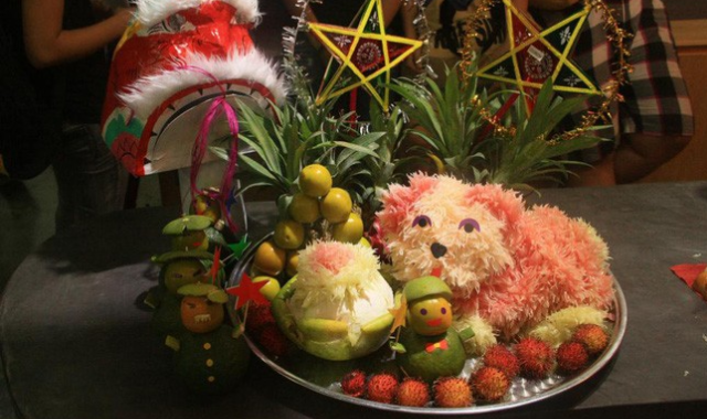 Ngoài ra, người ta cũng thường tạo hình chó bưởi hoặc tạo hình các con vật từ hoa quả để mâm ngũ quả thêm sinh động, bắt mắt hơn