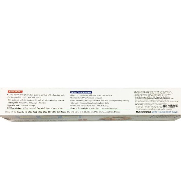 - Màng bọc Eufood Wrap 30cm x 30m đến từ Công ty CP XNK EUFOOD Việt Nam - nhà nhập khẩu và phân phối màng bọc thực phẩm hàng đầu Việt Nam. Mỗi sản phẩm đểu có giấy chứng nhận về nguồn gốc xuất xứ, giấy kiểm định chất lượng và có hạn sử dụng rõ ràng.