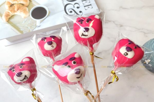Bánh cake pop tạo hình gấu dâu đáng yêu