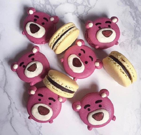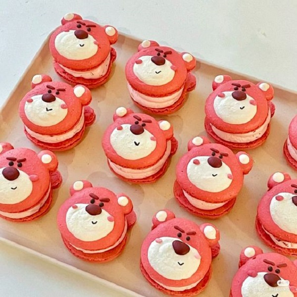 Một chiếc bánh macaron hình gấu dâu Lotso tròn trịa hay chiếc bánh quy giòn tan chắc chắn bạn sẽ phải trầm trồ sao có chiếc bánh vừa ngon vừa xinh như vậy.
