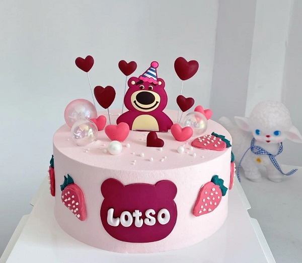 Gấu Lotso là chú gấu bông màu hồng dâu có vẻ ngoài tròn trĩnh. Dù trong phim chú luôn cau có, giận dữ, luôn đàn áp những đồ chơi khác, nhưng thực ra đây là chú gấu vô cùng đáng yêu, mũm mĩm được nhiều bạn trẻ yêu thích. Bởi vậy mà hình ảnh chú gấu dâu Lotso xuất hiện ở trên mọi sản phẩm, trong đó có cả bánh kem, bánh sinh nhật dành cho fan của gấu dâu.