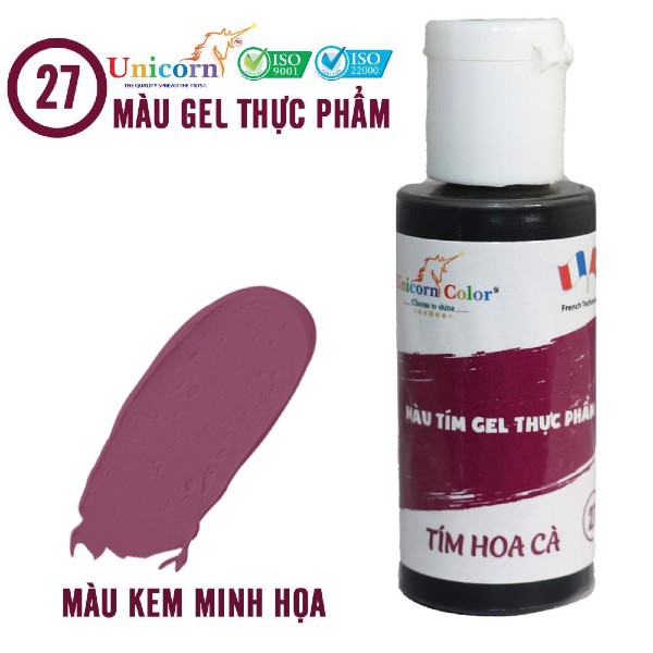 Màu tím hoa cà Unicorn Color 28g dùng để pha màu fondant, gumpaste, kem bơ,... nguyên liệu từ mía đường nên dùng nhiều không bị đắng.