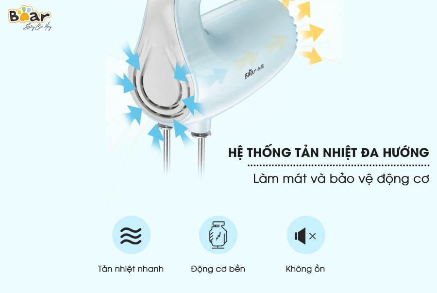 Ngoài ra, sản phẩm được trang bị động cơ lõi đồng nguyên chất, giúp đảm bảo tốc độ đánh ổn định và giúp máy có độ bền cao hơn các loại máy đánh trứng thông thường.
