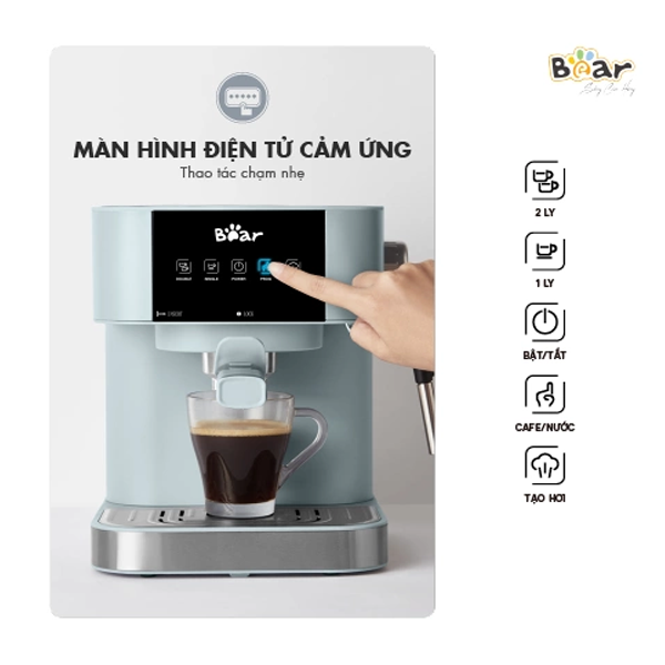 Máy pha cà phê Bear được tích hợp đa nhiều chức năng giúp bạn pha chế được nhiều loại cà phê chuẩn như ngoài hàng. Với mức áp suất 15bar mạnh mẽ, kết hợp với công suất 950W và nhiệt độ lý tưởng (92 độ C) máy pha cà phê Bear sẽ giúp bạn thưởng thức được những ly cà phê nguyên hạt chất lượng.