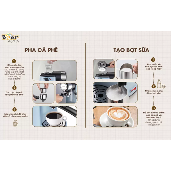 Freeship đơn đầu tiên khi nhập mã "FREEMOI"Một tín đồ cà phê chắc chắn không thể không sở hữu một chiếc máy pha cà phê hiện đại cho riêng mình đúng không nhỉ? Hôm nay cùng Beemart khám phá chiếc máy pha cà phệ thông minh đến từ thương hiệu Bear nổi tiếng nhé!