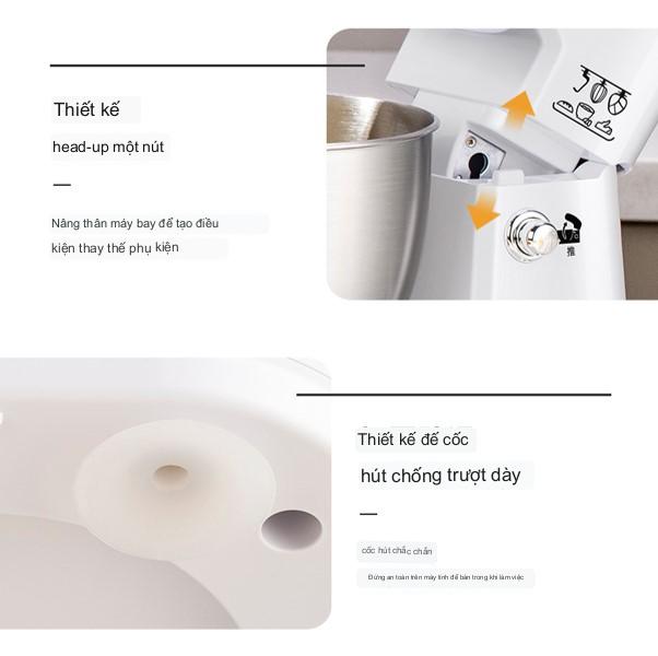 Phụ kiện đi kèm: Chân vịt trộn bột, chân vịt đảo trộn và chân vịt đánh trứng, nắp chống văng bắn.