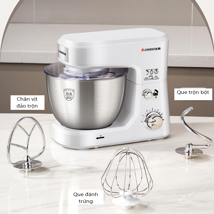 Đặc điểm nổi bật của sản phẩm Máy trộn bột và đánh trứng để bàn Chigo 4L