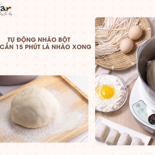 - Với máy trộn và nhồi bột Bear, bạn chỉ cần cho các nguyên liệu và khối trộn bột, trộn bột trong khoảng 15-20 phút và ủ bột với mức nhiệt cố định là 40 độ C trong 1 giờ 30 phút, bạn đã có thể tiết kiệm gấp 2 đến 3 lần thời gian vào bếp làm bánh. Bên cạnh đó, bạn có thể tự điều chỉnh thời gian ủ bột sao cho vừa vặn nhất để bánh sau khi nướng nở đều, không bị xẹp.