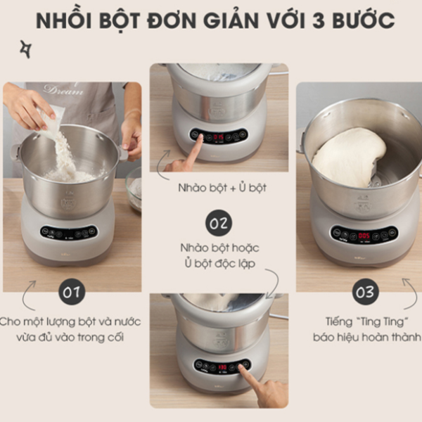 Với tính năng nhồi và ủ tự động và hẹn giờ nhồi, giờ bột nghỉ bạn có thể lầm được hầu hết các loại bánh từ Á đến Âu như bánh mì sữa, màn thầu, sủi cảo,.. mà chẳng cần tốn nhiều công sức