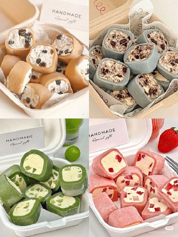 Bên cạnh mẫu được tạo hình các con vật dễ thương, mochi kem lạnh còn được biến tấu với nhiều hình thức khác nhau, như mochi kem cuộn cắt khúc, hay mochi kem que xiên cũng đang thu hút sự quan tâm của giới trẻ. Tham khảo thêm bạn nhé!