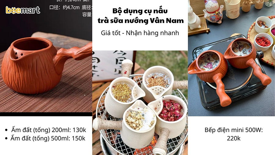 Bắt kịp xu hướng đồ uống mới, các món đồ dụng cụ để nấu trà sữa nướng Vân Nam được săn đón và tìm mua khắp nơi. Bạn có thể tìm trên các trang thương mại điện tử hay các địa chỉ làm thủ công. Để giúp bạn nhanh chóng tìm mua các món đồ với chi phí tiết kiệm nhất, tại Beemart đã có ngay các dụng cụ cần thiết cho bạn. Đặt mua nhanh chóng, chi phí tiết kiệm, tặng kèm công thức nấu trà sữa nướng.