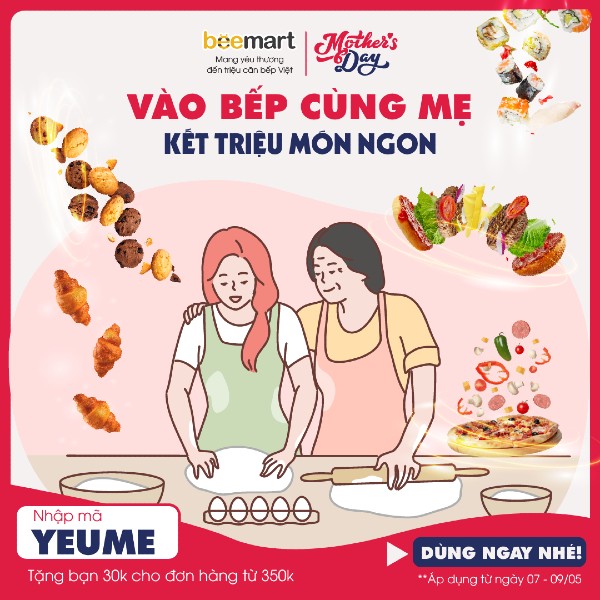 Ngoài các MÃ ƯU ĐÃI LỚN dành cho từng ngành hàng, Beemart còn 1 mã ưu đãi ĐẶC BIỆT khác dành cho quý khách nhân Ngày của mẹ, đó chính là mã YEUME.