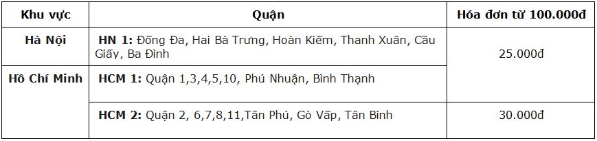 > Giao hàng trong 2 giờ chỉ từ 25k