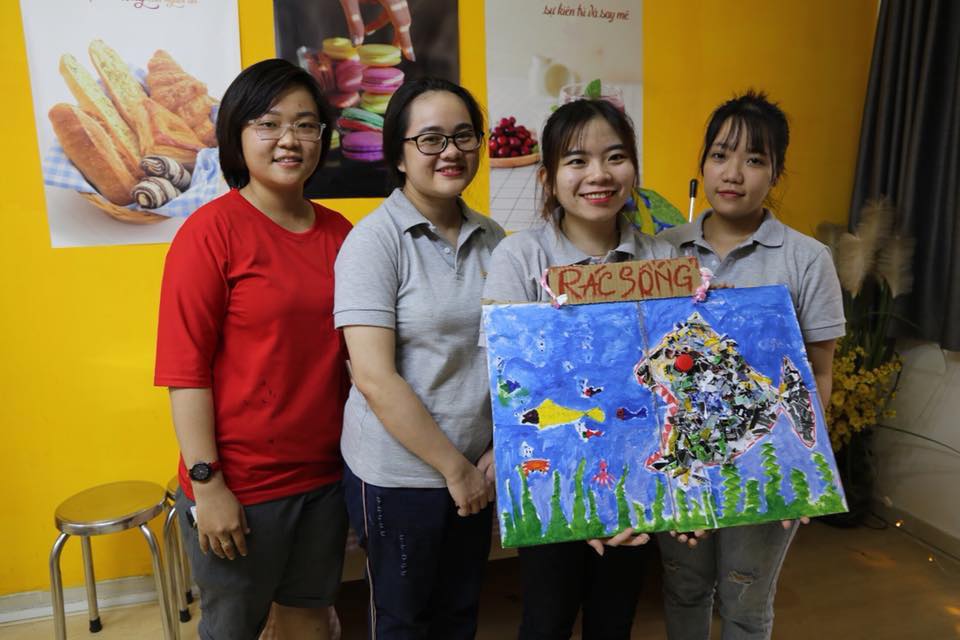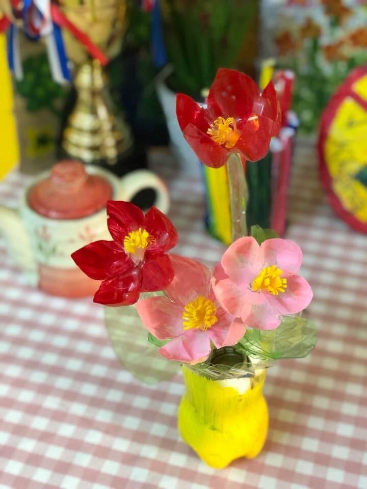 Tác phẩm được điểm tuyệt đối từ BGK nhà Bee với chủ đề " Sen mọc lên từ chai nhựa" của các cô gái Team Vận hành ^^