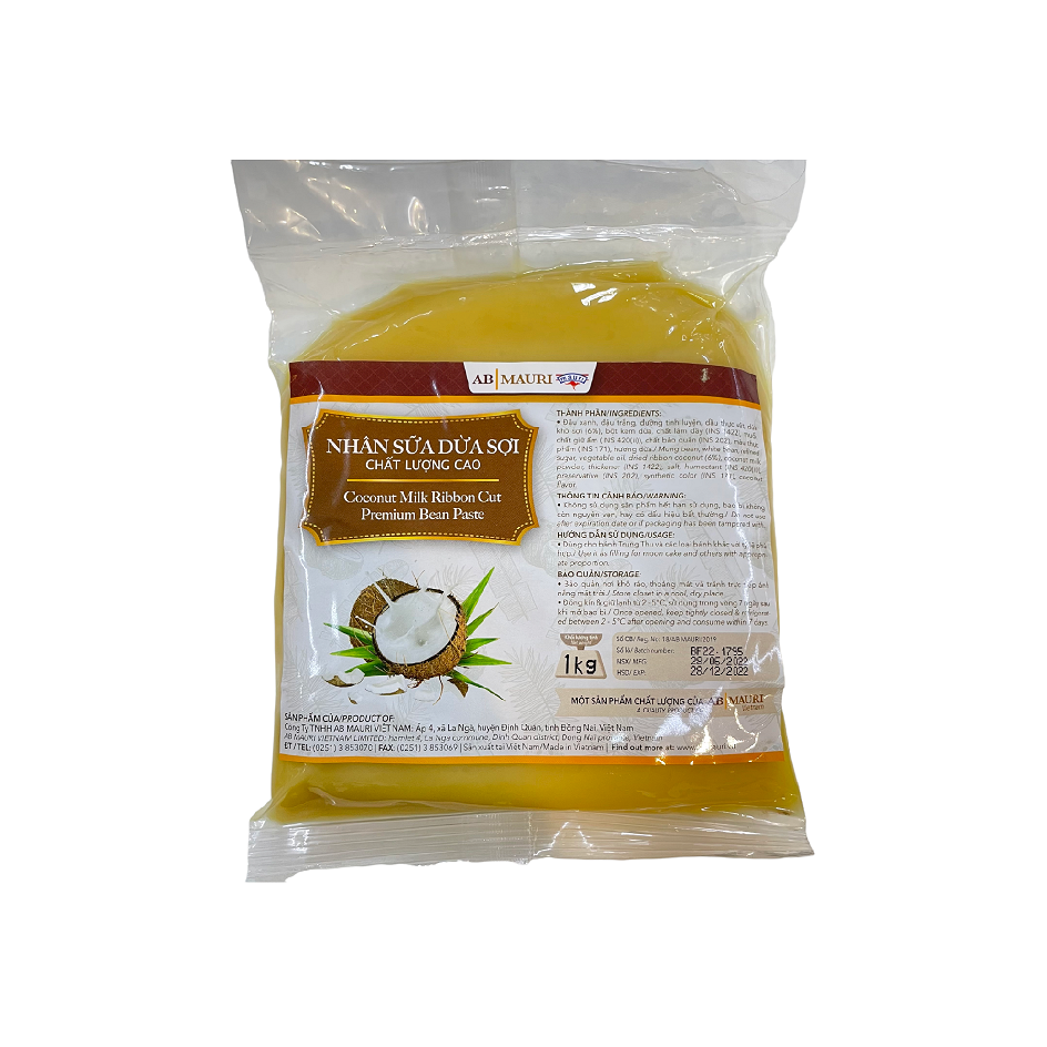 Nhân sữa dừa sợi ABMauri được đóng gói, hút chân không, giúp quá trình bảo quản lâu hơn và dễ dàng hơn. Khác biệt hơn loại nhân sữa dừa, sản phẩm này còn có những sợi dừa, khá đặc biệt và lạ miệng.