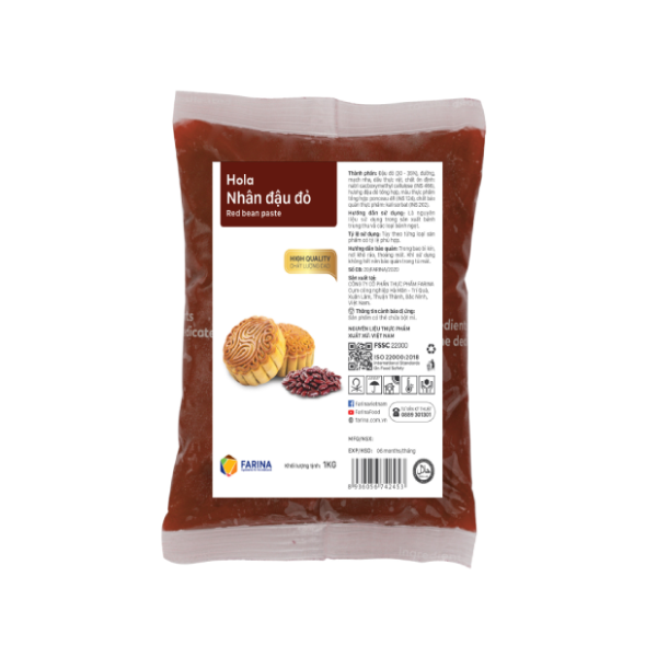 Freeship đơn đầu tiên khi nhập mã "FREEMOI"Nhân hương vị đậu đỏ Farina Hola 1kg là loại nhân sên sẵn hoàn toàn mới của Farina. Với vị bùi bùi đặc trưng của đậu đỏ, chắc chắn loại nhân này sẽ làm cho những chiếc bánh của bạn thêm phần thơm ngon.