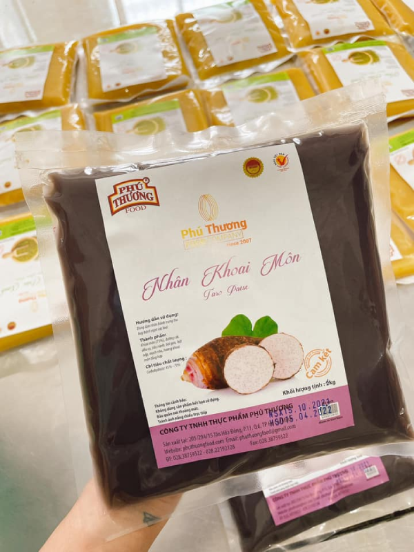 Hơn hết, nhân khoai môn Phú Thương với hương vị đậm đà, nên rất phù hợp để làm nhân bánh trung thu, bánh pía,…Sản phẩm được sản xuất trong quy trình công nghệ hiện đại vì vậy nên rất an toàn và đảm bảo chất lượng khi sử dụng.