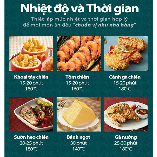Với nồi chiên không dầu Bear có dung tích lên đến 3,6L bạn có thể thỏa sức sáng tạo đa dạng các món ăn từ chiên/nướng thịt, rau củ, làm bánh đủ cho 4 người. Nhờ việc sử dụng chính chất béo của thực phẩm và khí nóng để chiên/ nướng vừa đảm bảo được hương vị thơm ngon của món ăn mà lại dùng dầu ăn giảm lượng chất béo xấu cũng như calo nạp vào trong cơ thể.