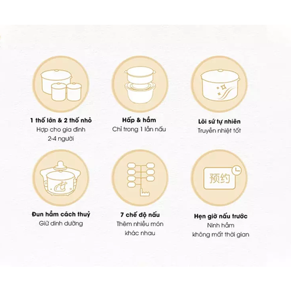 Công dụng: Dùng nấu các món hầm, hấp/luộc, giữ ấm, nấu cháo, làm đồ ngọt
