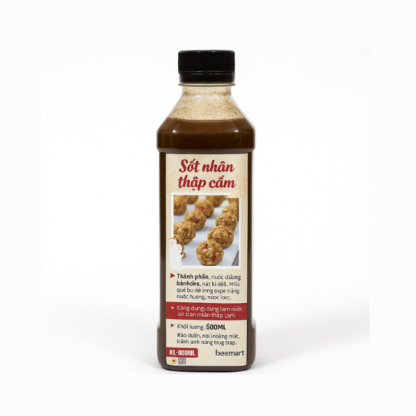 - Nước sốt trộn nhân thập cẩm trung thu 500ml gồm nhiều thành phần chính giúp tăng hương vị cho nhân thập cẩm như: mật ngô, nước đường bánh dẻo, mai quế lộ, hắc xì dầu, dầu mè, rượu trắng, xì dầu, nước lọc