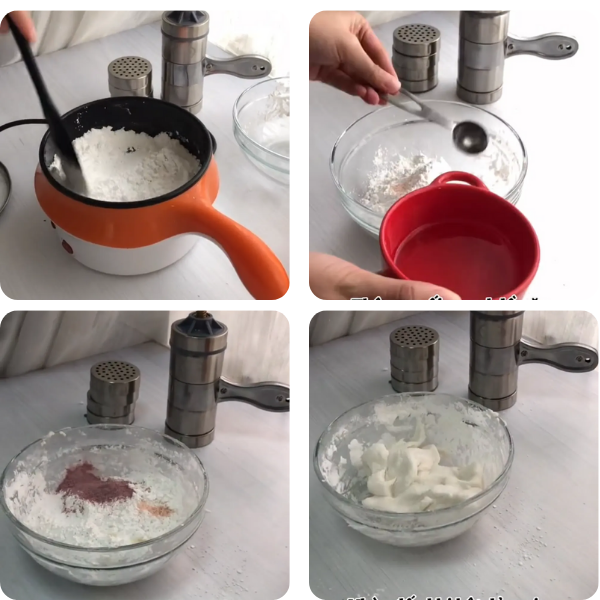 Nếu muốn tạo màu thì ở bước này bạn thêm vào 5g bột rau củ theo sở thích nhé.