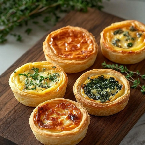 Với món mặn, Puff Pastry có thể biến thành bánh mini xúc xích, tart phô mai hay bánh cuộn cá hồi – nhẹ nhàng, tinh tế, rất hợp để khai vị.