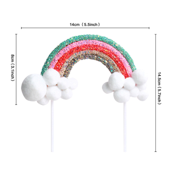 Que cắm cầu vồng lấp lánh gồm phần que cứng cáp, phầnphần chữ Happy Birthday gắn cầu vồng từ xốp và kim tuyến lấp lánh, thích hợp cho bữa tiệc sinh nhật của con gái hoặc bé yêu.